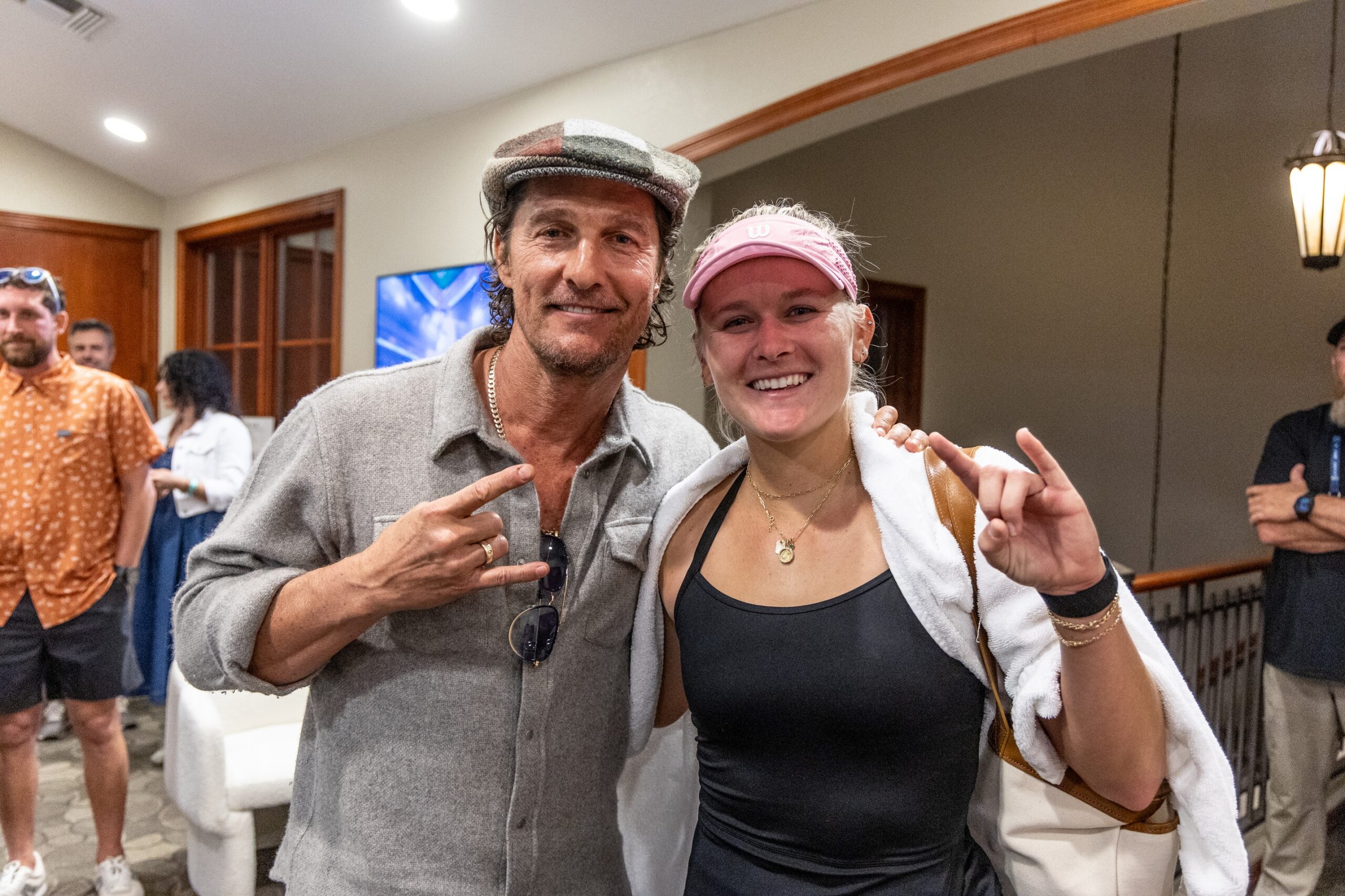 Academy Award winner Matthew McConaughey made a courtside appearance at the ATX Open, showing his support for fellow Longhorn Peyton Stearns during her semifinal run.